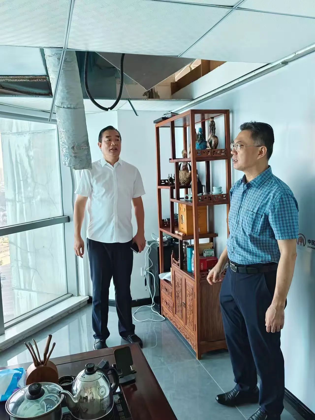 林青主委一行在公司總經(jīng)理顏利的帶領(lǐng)下查看了公司幾個(gè)因臺(tái)風(fēng)“摩羯”而受損的辦公區(qū)域。在調(diào)研座談會(huì)上,公司總經(jīng)理顏利通過(guò)PPT圖片形式向林青主委一行介紹了本次受災(zāi)受損情況,企業(yè)辦公區(qū)域積水、滲水嚴(yán)重,吊頂脫落、玻璃吹碎、設(shè)備損壞,多個(gè)項(xiàng)目部及工人生活區(qū)板房被吹塌、設(shè)備及電箱圍墻等受到嚴(yán)重破壞。顏利總表示,上述問(wèn)題給企業(yè)造成了巨大的經(jīng)濟(jì)損失,嚴(yán)重影響了復(fù)工復(fù)產(chǎn)的進(jìn)度,請(qǐng)各級(jí)政府部門(mén)能夠給予廣大企業(yè)更多的關(guān)懷和幫助,出臺(tái)政策及措施助力企業(yè)走出困境。